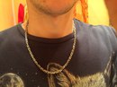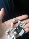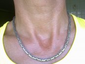Full-fledged silver chain around the neck.