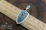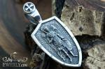 "Archangel Michael" shield-shaped pendant of 925 sterling silver with blackening
